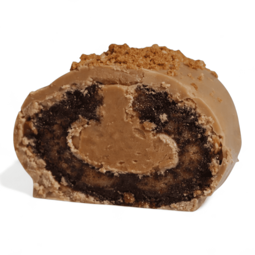 Signature Biscoff filling coated with caramel chocolate and sprinkled with Biscoff biscuit. Sweet, spiced, and crunchy, offering a refined taste experience.
